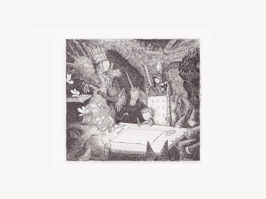 Willy Leung (1973) lives and draws in Antwerp. Mainly self-taught, he gets his inspiration from the paintings of Bruegel, Miyazaki’s movies and Shaun Tan’s illustrations. He takes elements from fairytale, fantasy and childhood worlds, adds some storytelling and creates little charming scenes full of kind creatures and brave children. Most of his work consists of traditional ink drawings, but he is now shifting to digital painting (Procreate on the iPad). For this exhibit, he made Between the River and the Moon, referring to the in-between world where most of his drawings take place.