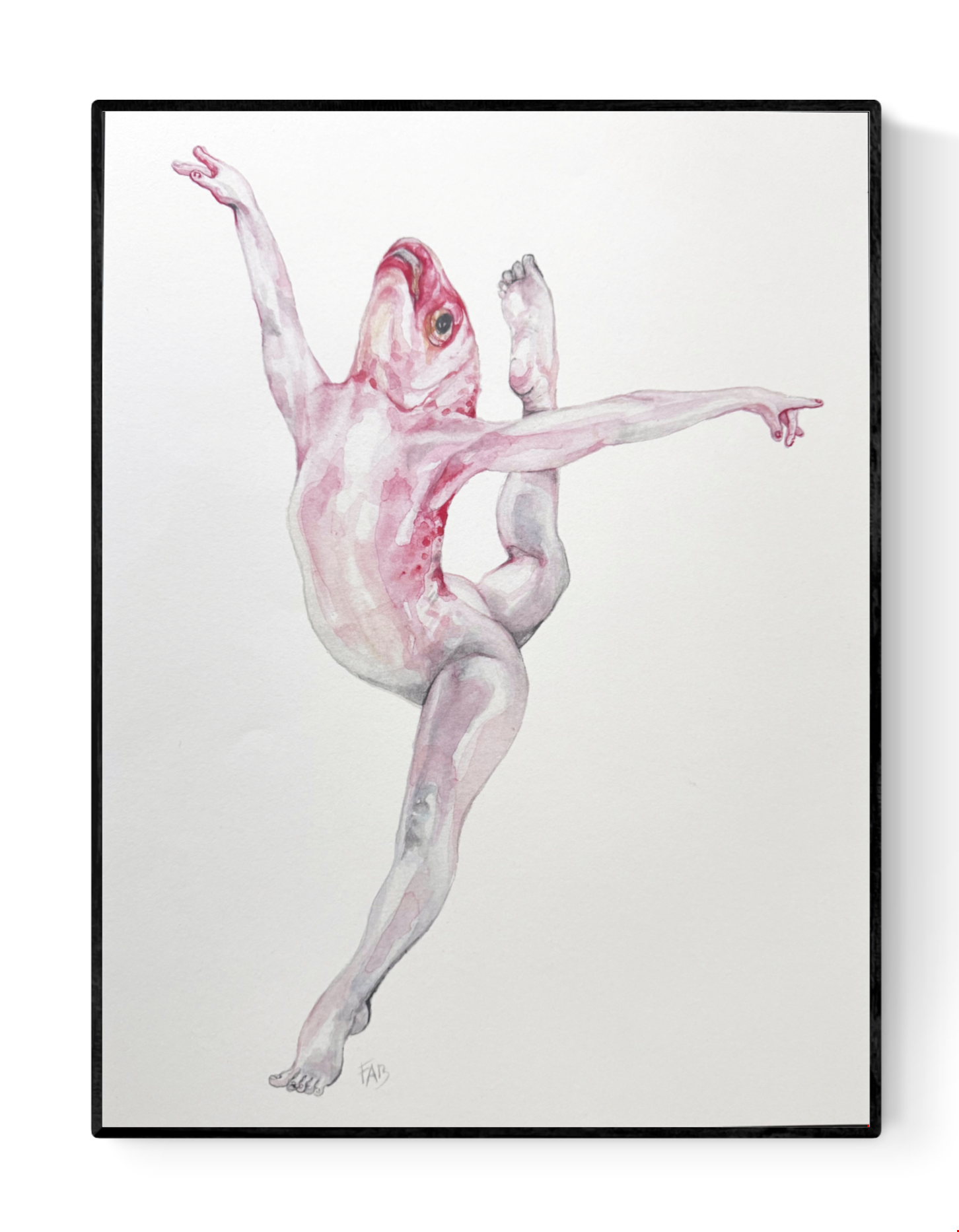Add charm and surreal humor to your space with Diva Fish by Belgian artist FAB. This unique watercolor print blends human bodies and fish heads in a tender embrace — playful, poetic, and perfect for modern, quirky interiors. A true conversation starter for art lovers.