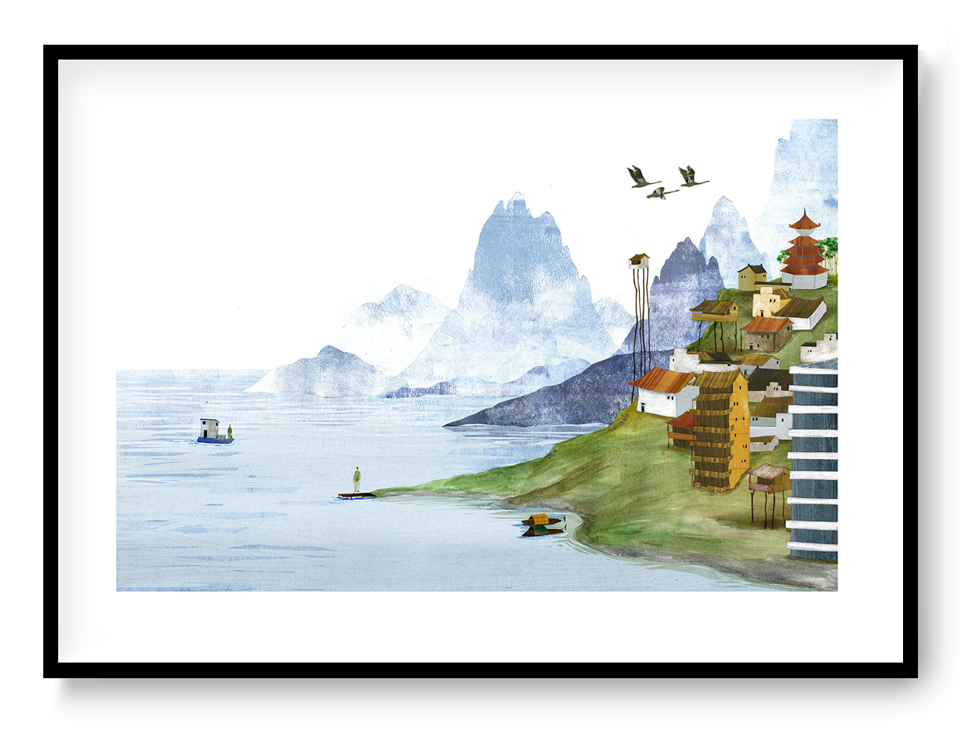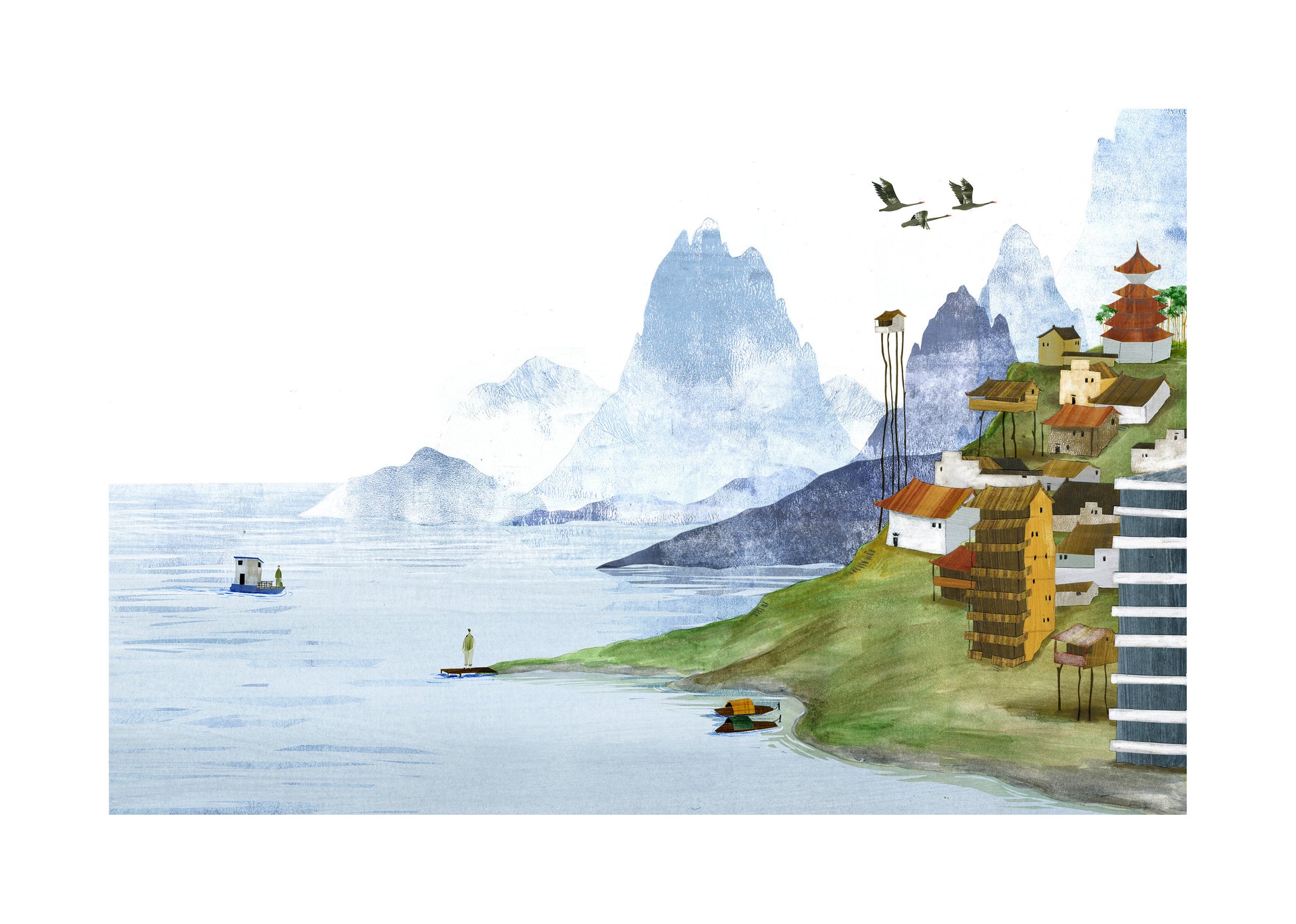 Illustration based on the well-known Chinese book 'Wild Swans' from Jung Chang, about 3 generations of women in China. Shown here is the homecoming of De-Hong. The illustration is a combination of an acrylic painting and digital collage.